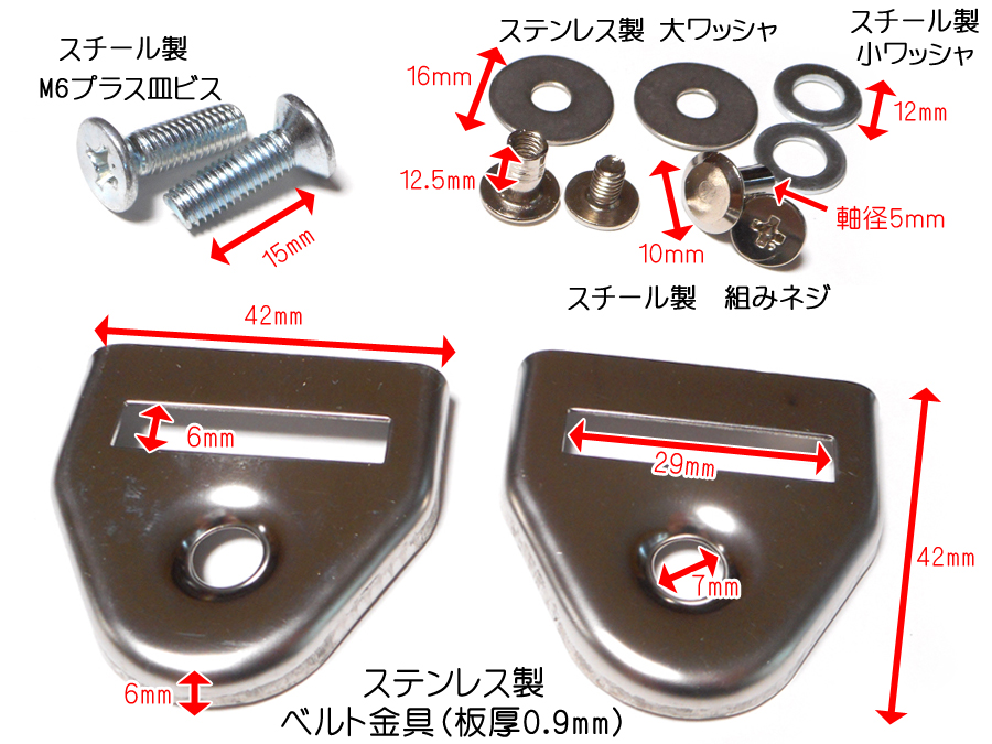 ・スチール製 ベルト固定用組みネジ(M5、長さ12.5mm) 2組